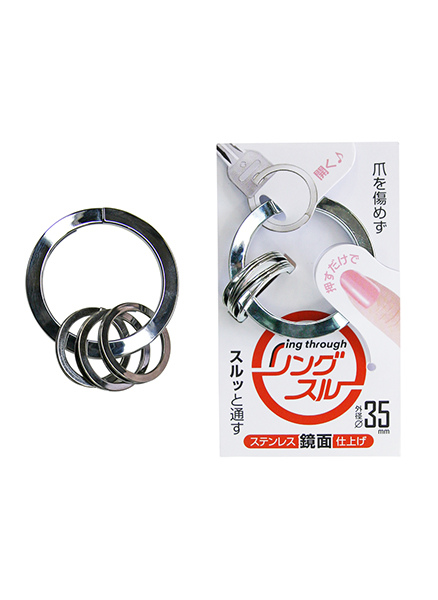 リングの膨らんでいる箇所を押すだけで広がるので、爪を傷めず簡単にリングを通すことができます。