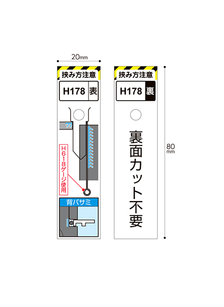 マシンへのセットに注意が必要なガイドのブランクキーキーボード吊り下げ用タグ仕様です。ブランクキーの手前に掛けることで選定時にセットの注意を促します。(全39品番)