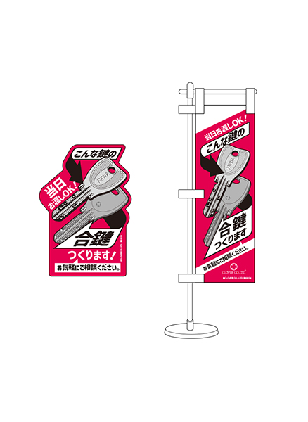 MIWA PS/PR店頭合鍵作製をしっかりアピール。 レジ周りなどいろんな場所への設置を想定した販促セットです。 セット内容 1.スイングPOP ×1 2.ミニのぼり ×1 3.ラミPOP ×1 4.ポスター ×1
